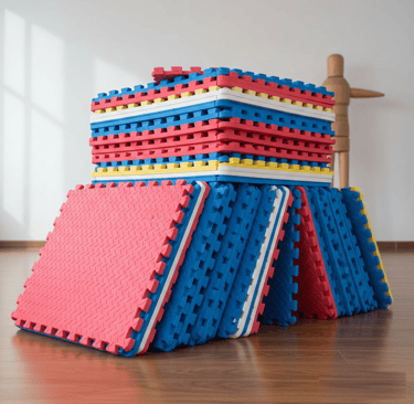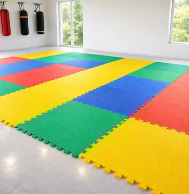 "EVA Flooring Mats combine comfort, durability, and safety in every step. Perfect for Martial Art Clubs & Gyms, Kinder Garden & daycares, Playrooms, Schools & Sports clubs or any space that needs a soft, protective surface, these mats absorb impact while enhancing the look of your floor. Step onto quality that lasts and feels as good as it looks."